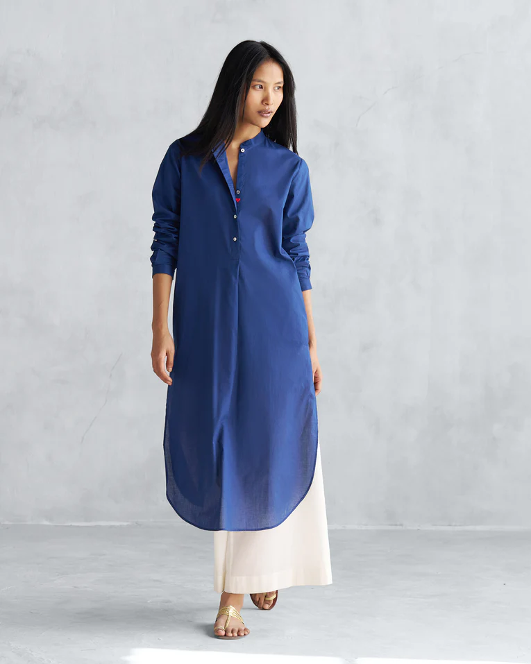 - This easy-wearing kurta falls below the knee, and with its body-skimming fit, it pairs perfectly with pyjamas or a pair of jeans